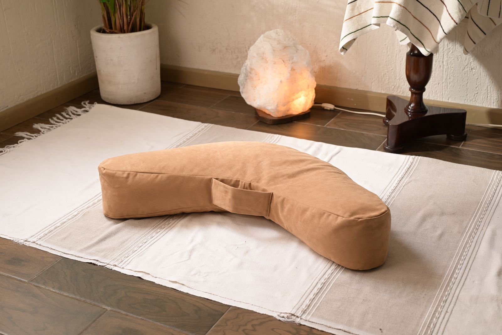 Un cojín de meditación ergonómico que combina la tecnología de textiles modernos con un relleno natural y ecológico, diseñado para ofrecer un soporte firme que se adapta anatómicamente al cuerpo.