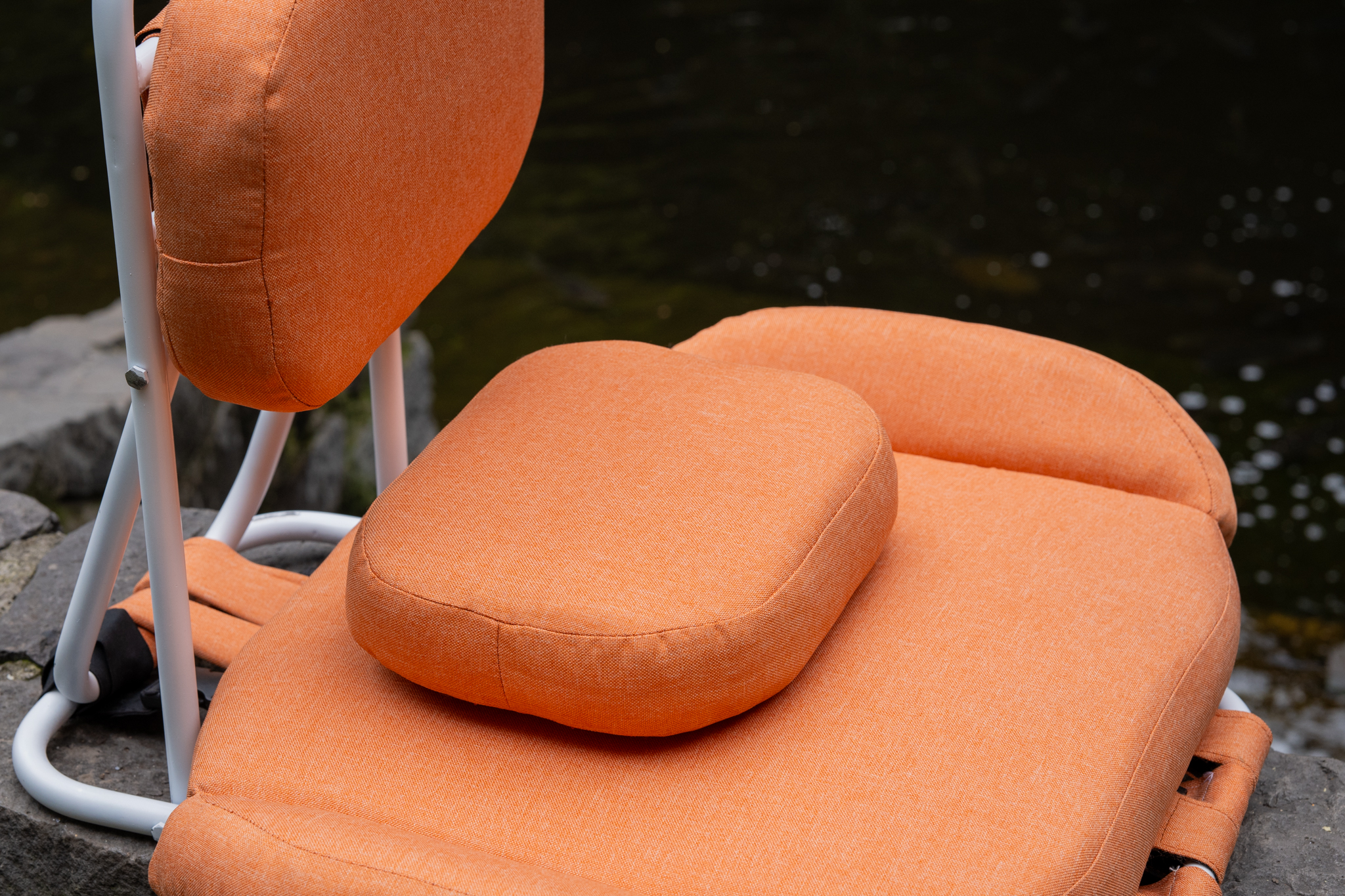 Silla diseñada para el confort y la practicidad; combina una estructura metálica resistente con un sistema de cojines ergonómicos de tacto suave y alta densidad que brindan soporte al peso del cuerpo.